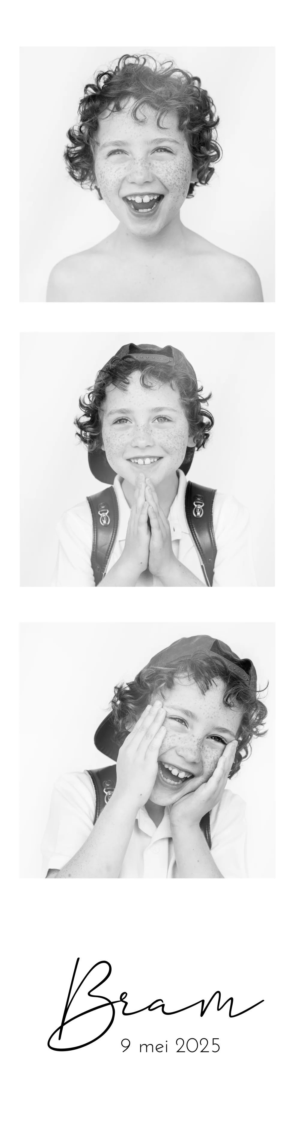 Wat een leuke communie-bedankkaart voor jullie kind! Op deze kaart is er ruimte voor drie foto's. De bedankkaart is in de stijl van een fotostrip. De foto's en de tekst kunnen gemakkelijk in de editor worden aangepast.
