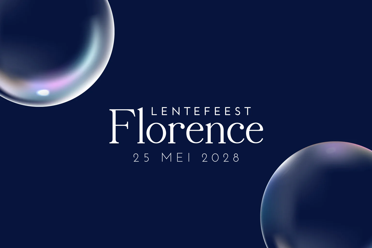 Mooie uitnodiging voor een communie in diep donkerblauw, waardoor de tekst in holografische folie mooi naar voren komt. In de hoeken staan bellenblaas bubbels in bijpassende kleuren.