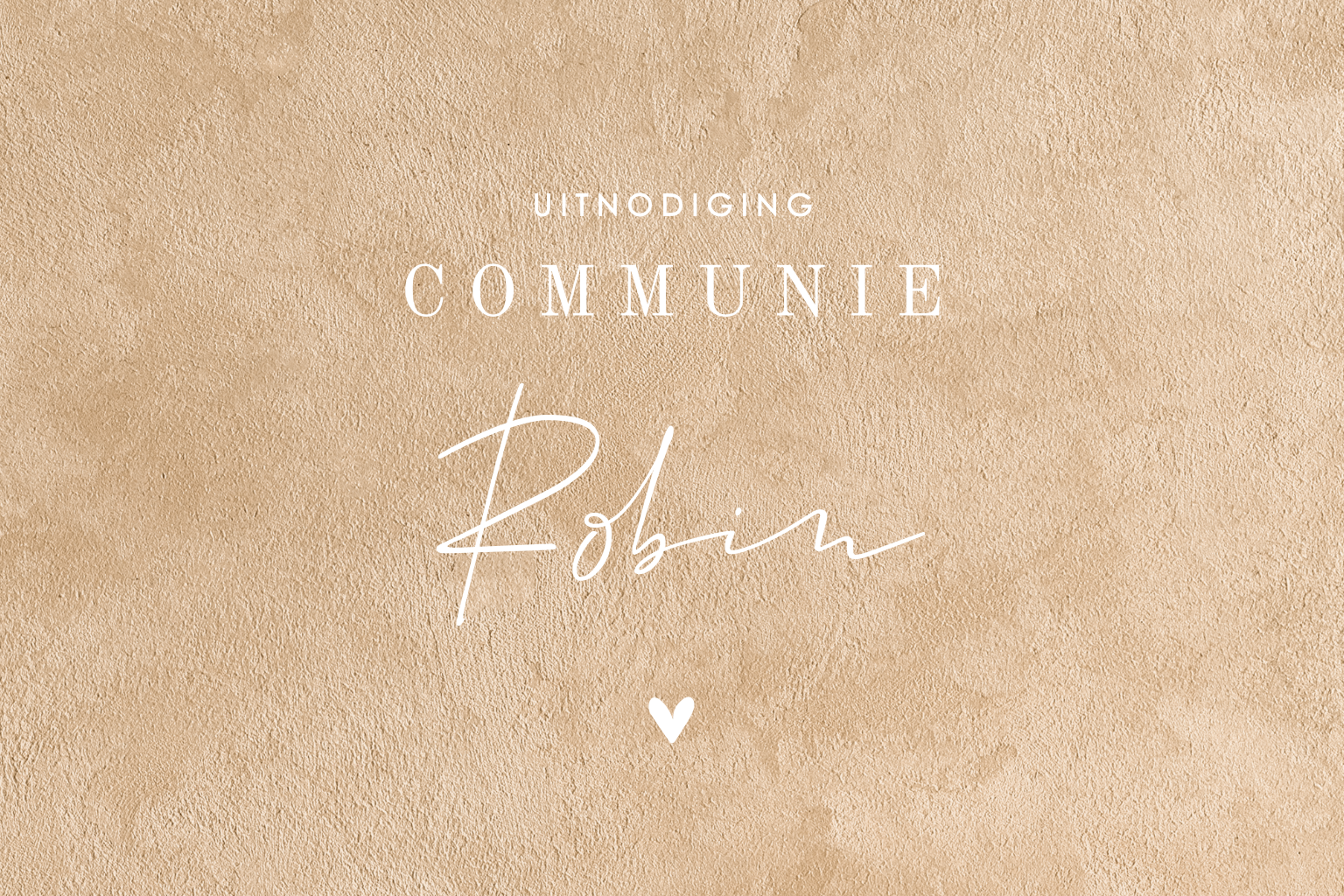 Een neutrale uitnodiging voor de communie van een jongen of meisje in beige velvet-look. De tekst staat in verschillende lettertypes in luxe goudfolie waardoor je een stijlvol kaartje krijgt, pas de kaart naar wens aan in de online editor.