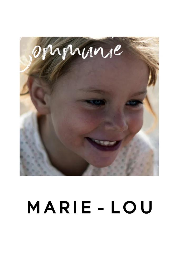 Trendy uitnodiging voor een communie met ruimte voor eigen foto op de voor- en achterkant. Met hippe letters in verschillende kleuren maak je er een vrolijke kaart van. Het ontwerp is eenvoudig aan te passen in de online editor.