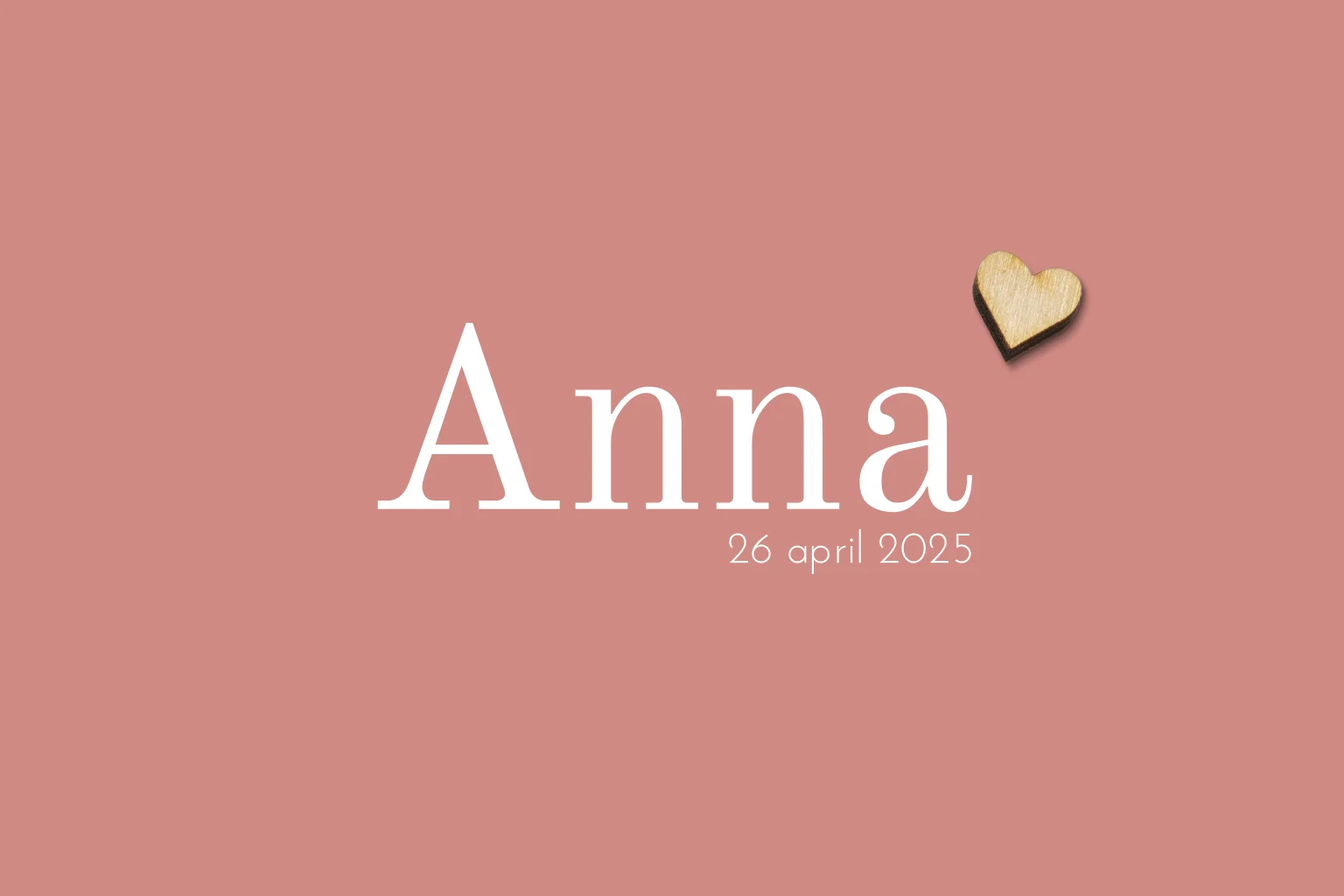 Op zoek naar een minimalistische communiekaart voor je dochter? Kies dan voor deze variant met een houten hartje erop! Het kaartje heeft een roze achtergrond, waardoor het een rustige en klassieke uitstraling heeft. Op de voorkant staat een typografische tekst die het kaartje simpel maar stijlvol maakt.