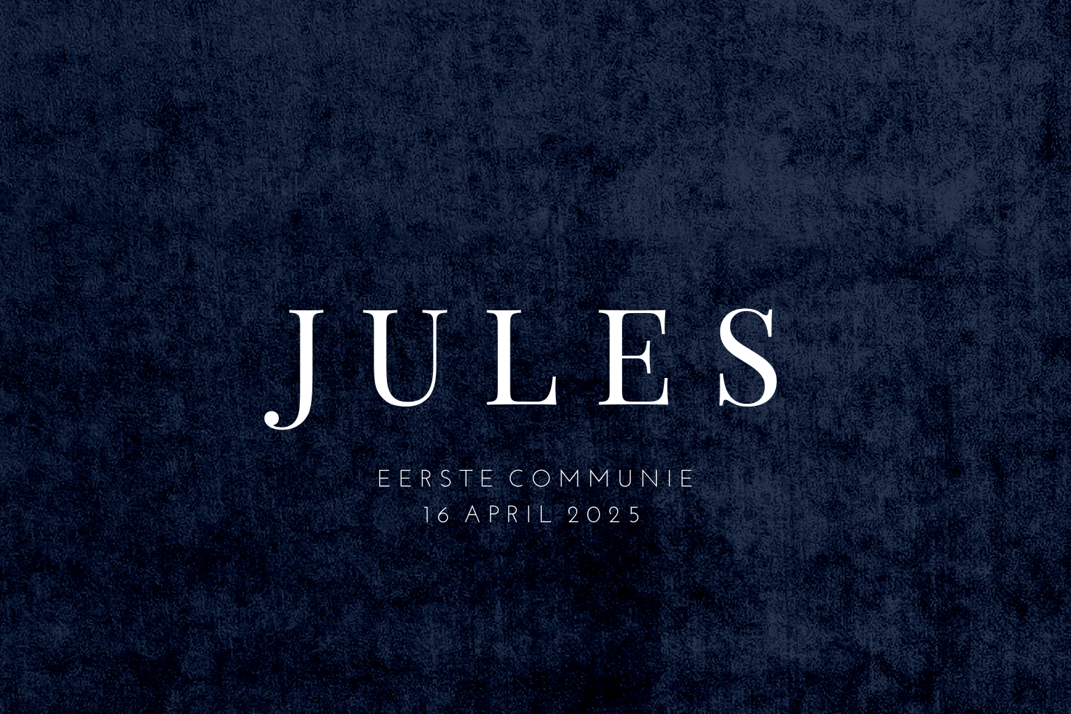 Eenvoudig maar luxe, deze uitnodiging voor de communie! Op de donkerblauwe velvet achtergrond staat de tekst in goudfolie, waardoor alle aandacht naar de naam gaat.