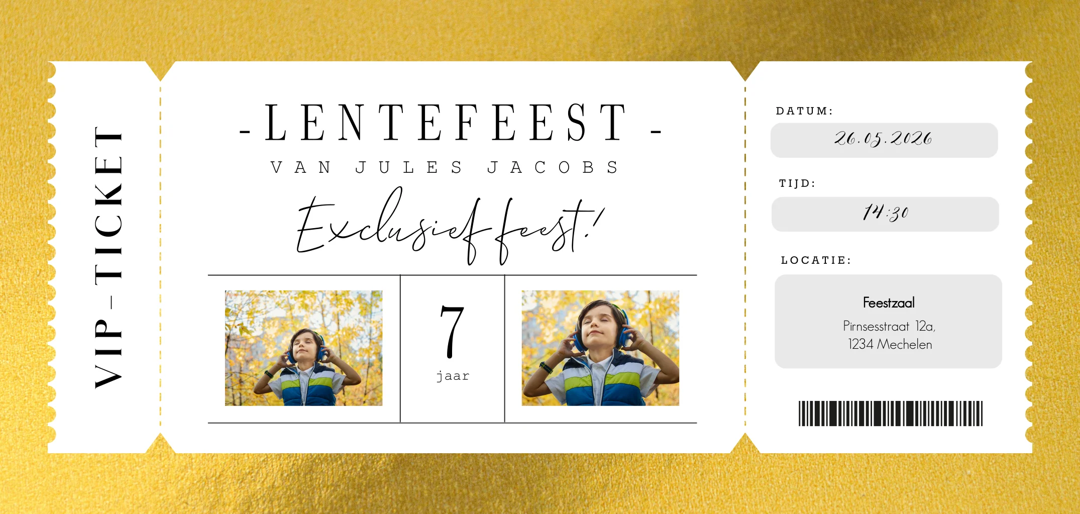 Met deze originele lentefeest uitnodiging in de vorm van een VIP ticket met een gouden kader, heb jij het perfecte kaartje in handen voor deze speciale gelegenheid!