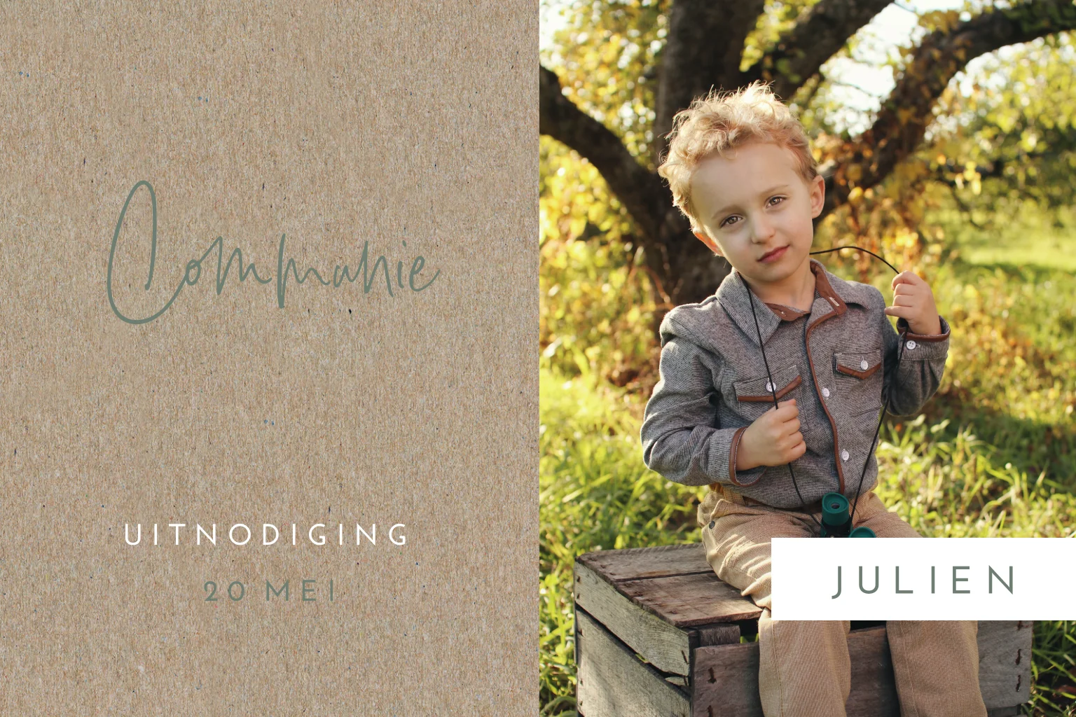 Stoere communiekaart in kraft-look met foto