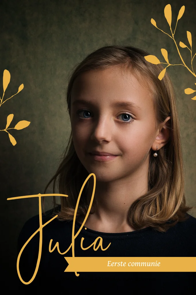 Trendy communiekaart met foto en takjes
