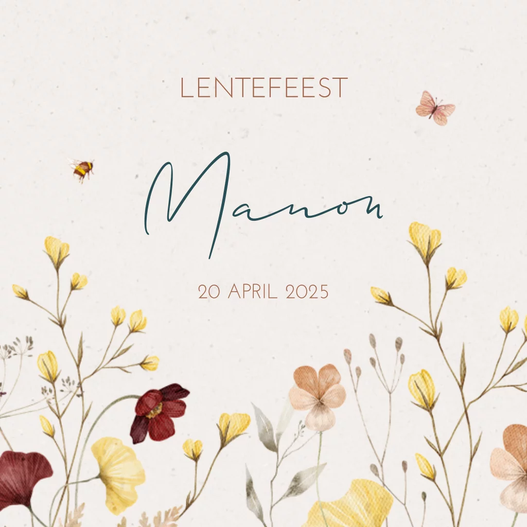 Uitnodiging communie met bloemen en vlinders