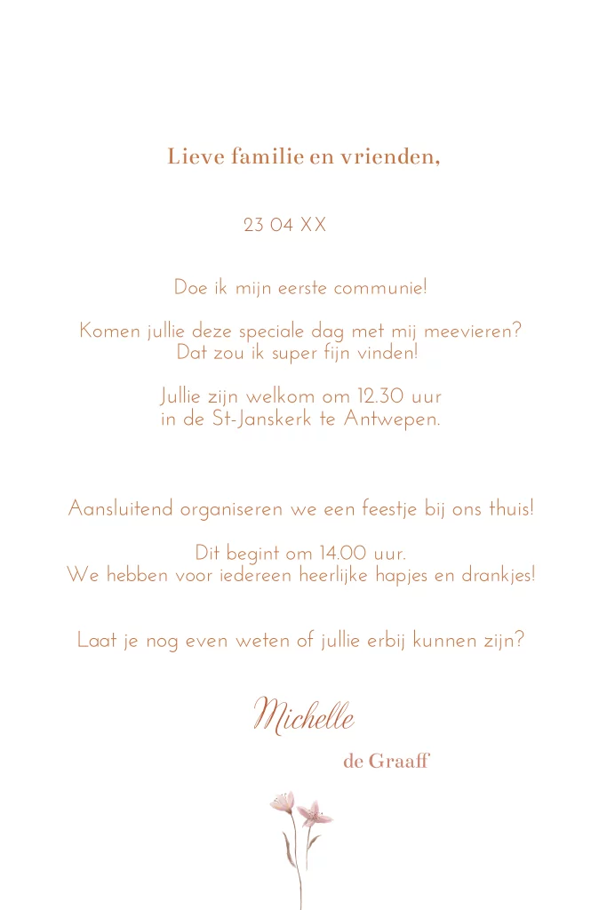 Mooie fleurige uitnodiging voor een eerste communie of vormsel