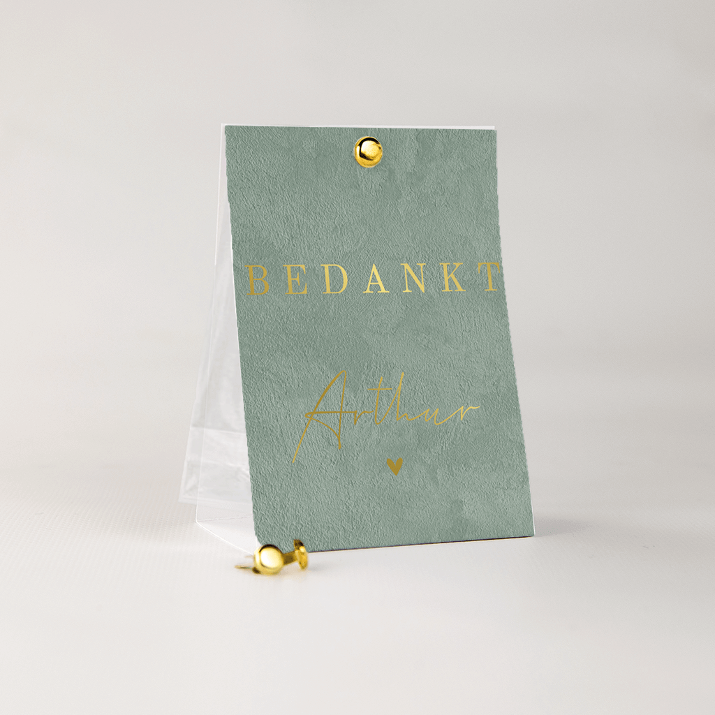 Bedanktentkaartje voor communie met goudfolie en groene velvetlook