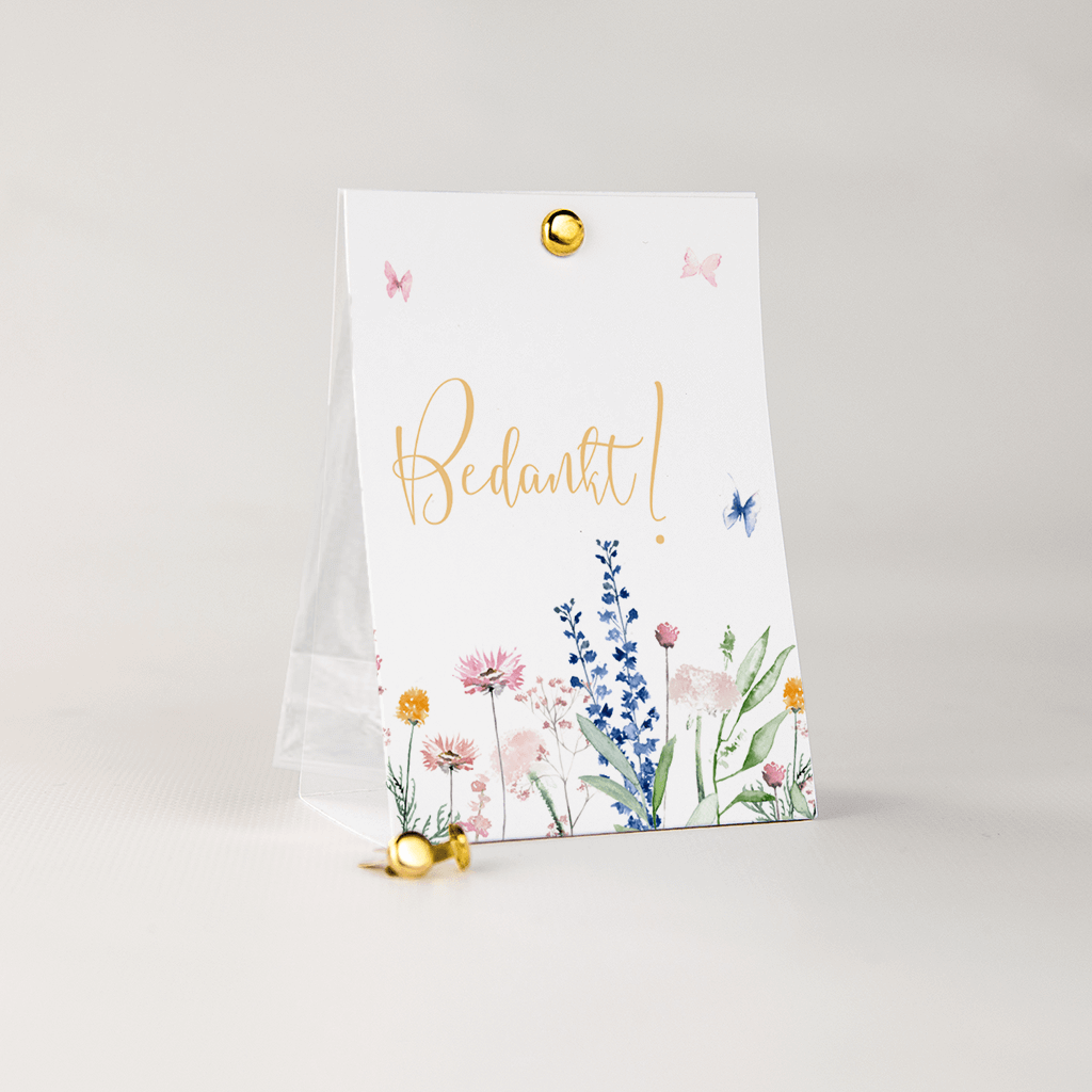 • Voorzien van een gaatje voor de splitpen. Hiermee sluit je het kaartje. De splitpen en het transparant zakje moeten apart besteld worden.