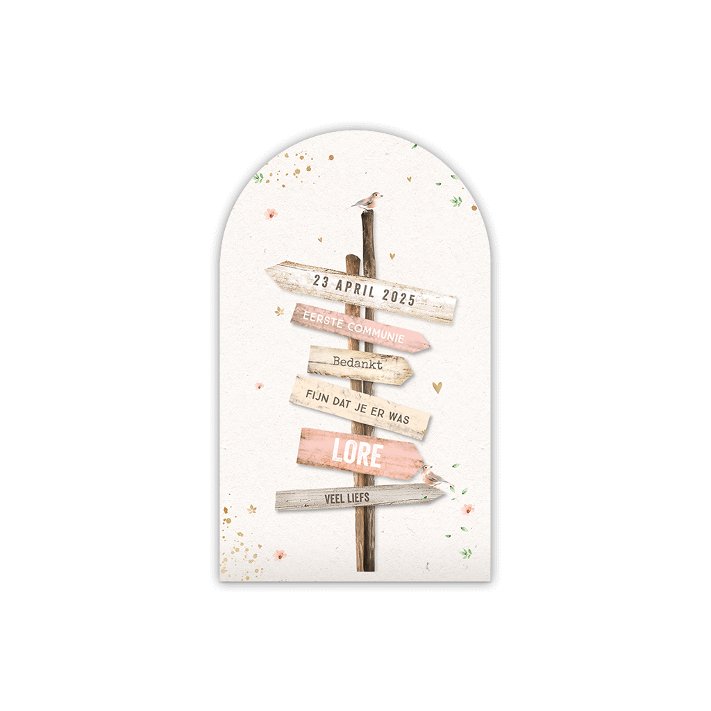 Boogkaartje communie wegwijzer meisje