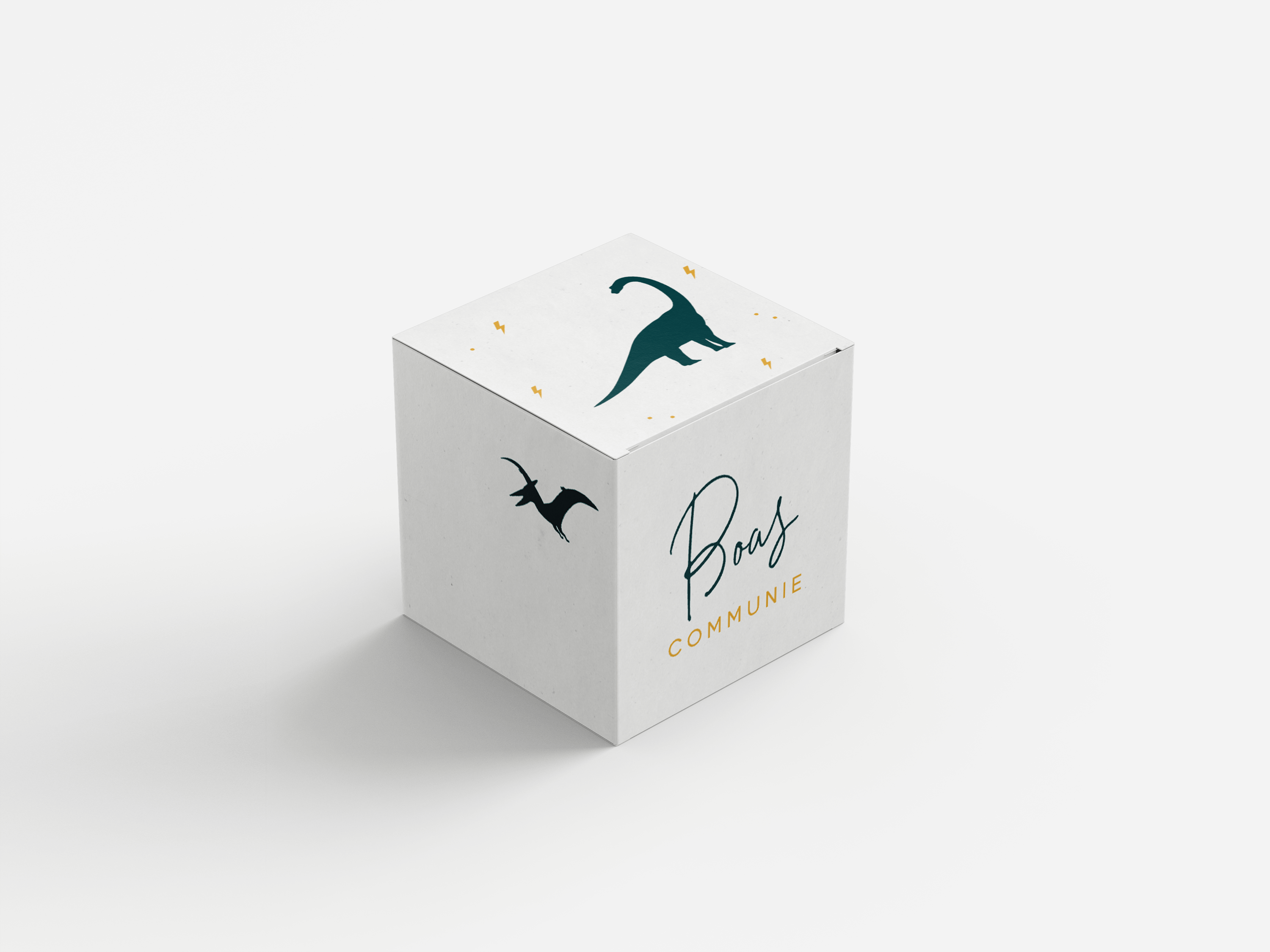 Leuk kubusdoosje, wit met blauwe dino's en sterretjes en een takje in de hoek. Op 1 zijde kun je een eigen foto uploaden. Het doosje is 5 cm hoog, breed en diep en wordt ongevouwen geleverd. Levertijd van het doosje is 4 werkdagen.