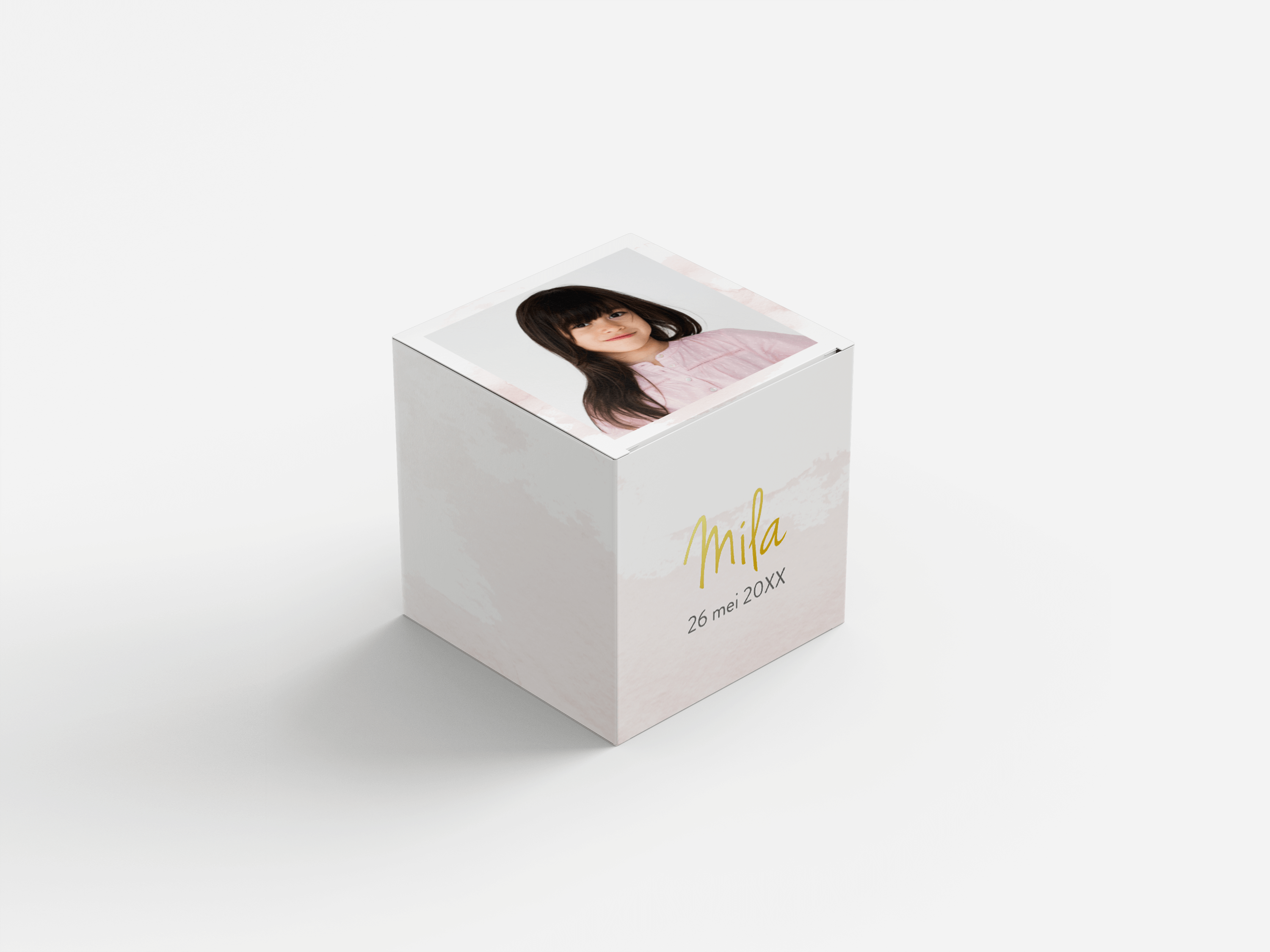 Het doosje is 5 cm hoog, breed en diep en wordt ongevouwen geleverd. Levertijd van het doosje is 4 werkdagen.