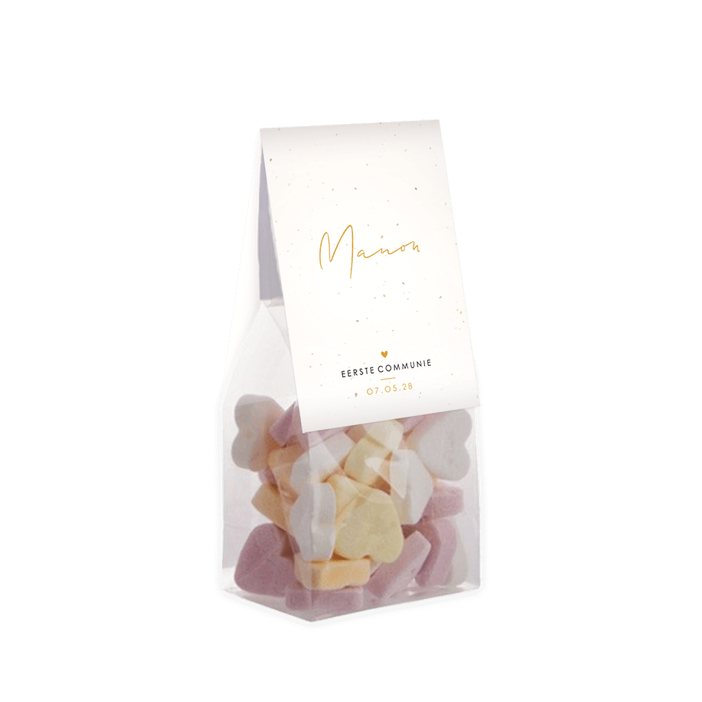 • Te combineren met transparant zakje. Het vouwkaartje kan met nietjes aan het zakje worden bevestigd.