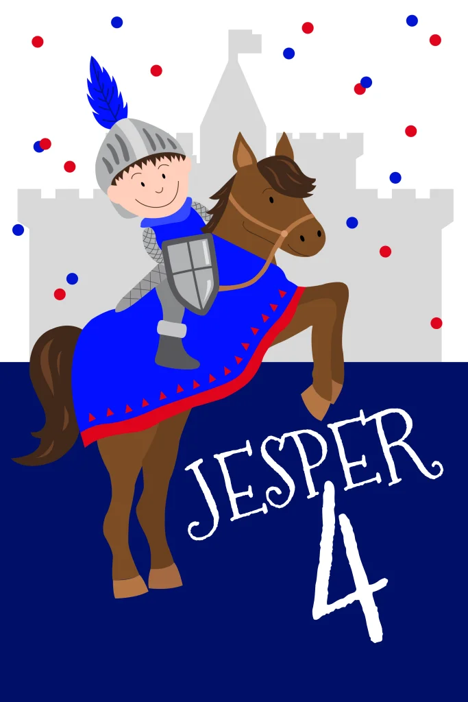 Leuk voor een fantasierijk zoontje is deze stoere verjaardagskaart met een ridder te paard met op de achtergrond een kasteel en vrolijke stippen! Wat zijn jullie plannen voor het kinderfeestje?