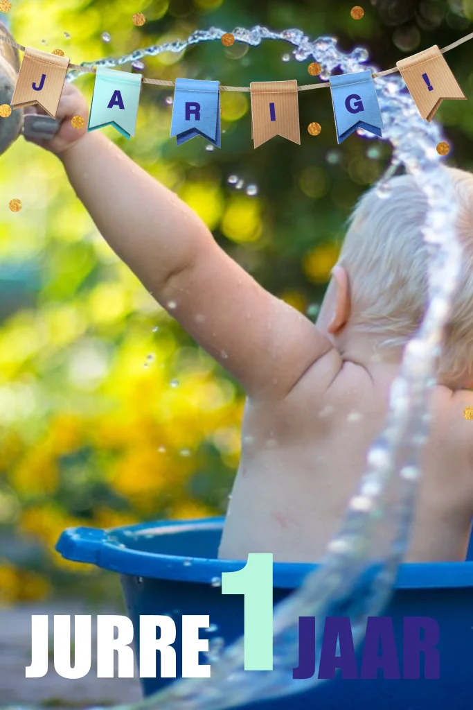 Een stoere uitnodiging voor de eerste verjaardag van jullie zoontje. Op de voorkant upload je een leuke foto en de teksten pas je aan in de online editor. De leuke slingers en confetti maken het kaartje helemaal af!