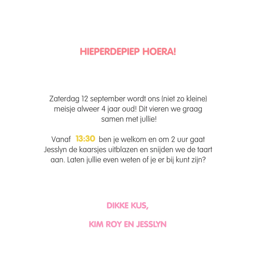 Nodig familie en vriendjes en vriendinnetjes uit met dit grappige, verjaardagskaartje met een aapje dat niet in de boom hangt, maar aan een grote 4! Met de ballonnen is deze vrolijke kaart echt af! Aan de binnenkant kun je een foto uploaden van de jarige. Pas de kaart zelf aan in de online editor voor een unieke uitnodiging!