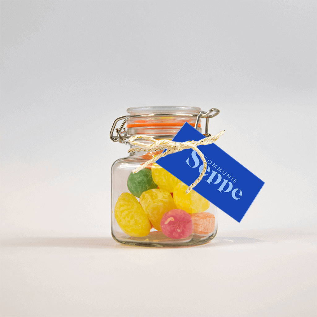 Stoer kobaltblauw label bij de communie van jullie zoon. De coole lichtblauwe letters staan in een strak modern lettertype centraal, pas de naam eenvoudig zelf aan in de online editor, zo gedaan!