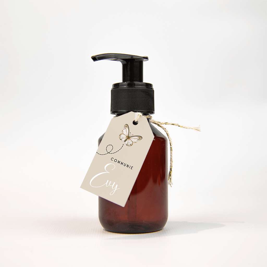 Stijlvol labeltje met vlinder voor de communie van een meisje.
