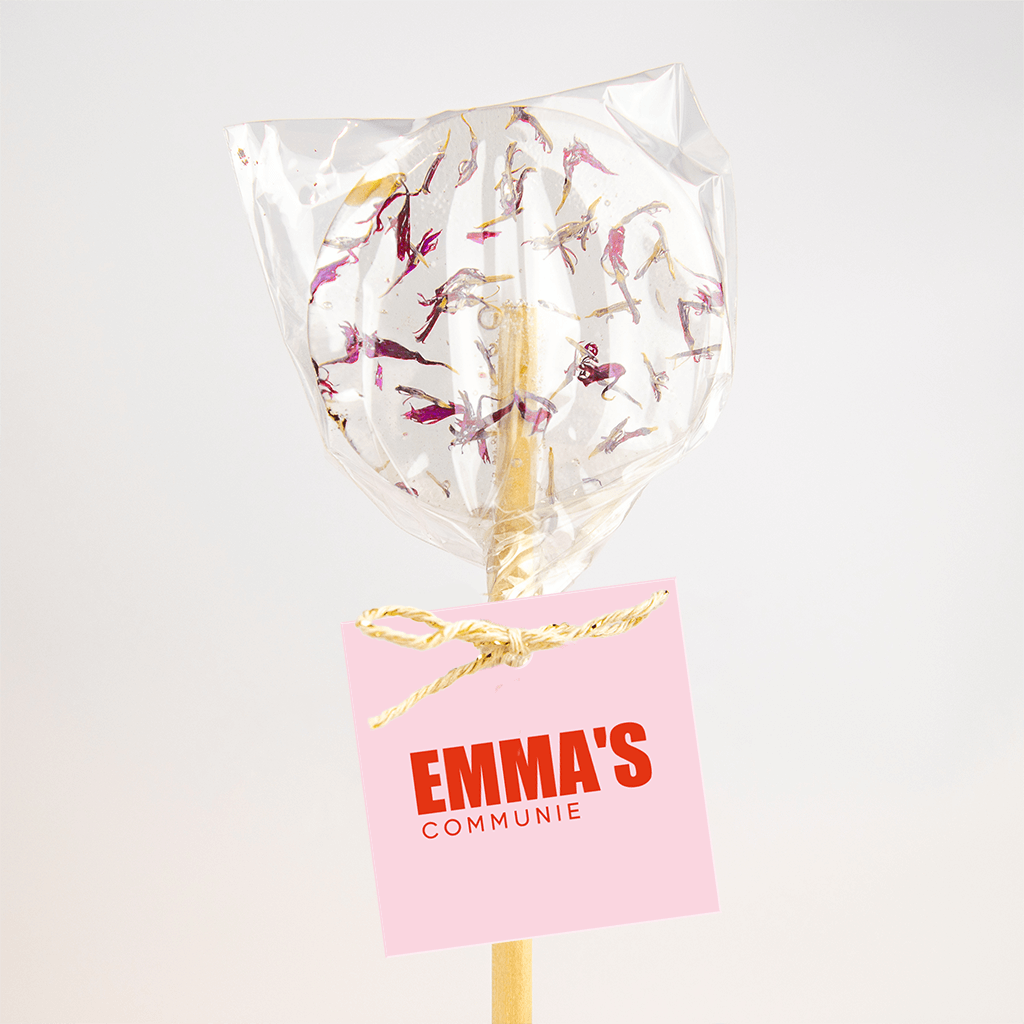 Label communiebedankjes voor meisje in colourblock - 16 stuks