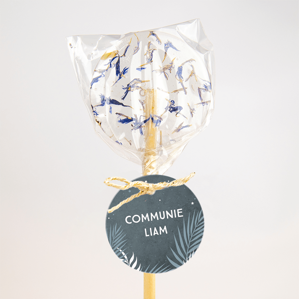 Op zoek naar een origineel communiebedankje? Bekijk dan eens dit labeltje met takjes op een blauwe achtergrond! Deze trendy label is perfect voor een jongen of meisje. Bestel vandaag nog en ontvang je labeltjes snel in huis!