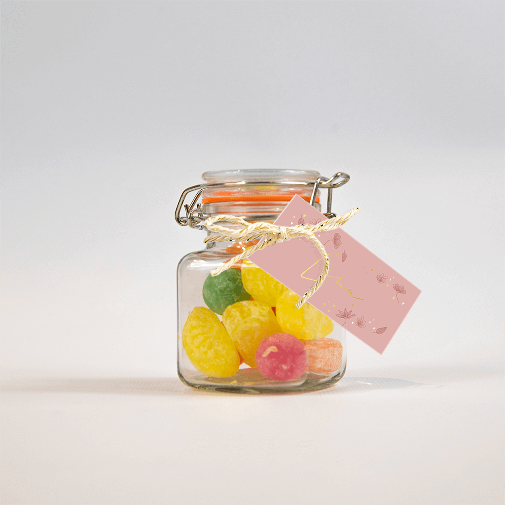 Echt een labeltje voor een lentefeest, met vrolijke bloemetjes en blaadjes in roze! Het kaartje is extra feestelijk doordat de naam in goudfolie is gedrukt en hartjes en sterretjes maken er een lief kaartje van.