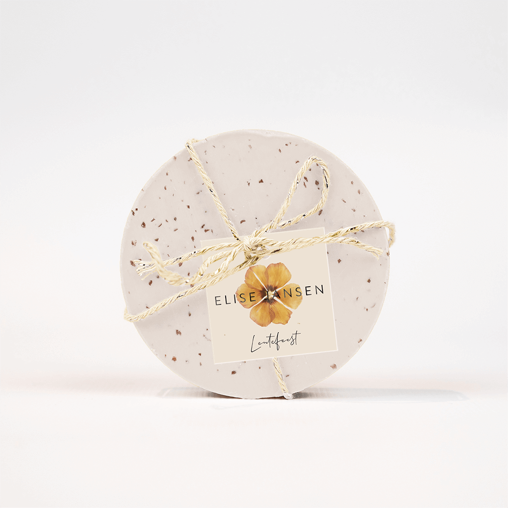 Vierkant labeltje voor lentefeest met bloem - 16 stuks
