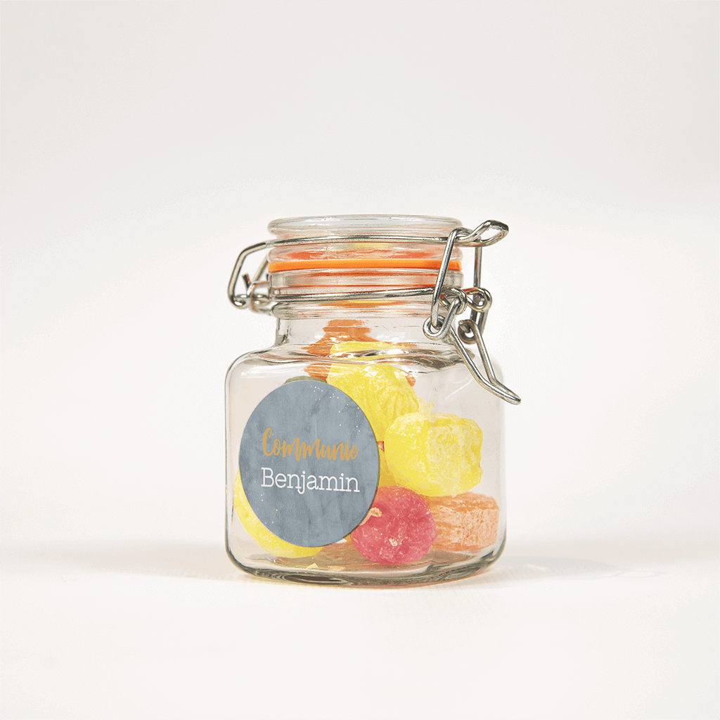 Communie sticker in blauwe velvet-look - vel van 25 stickers