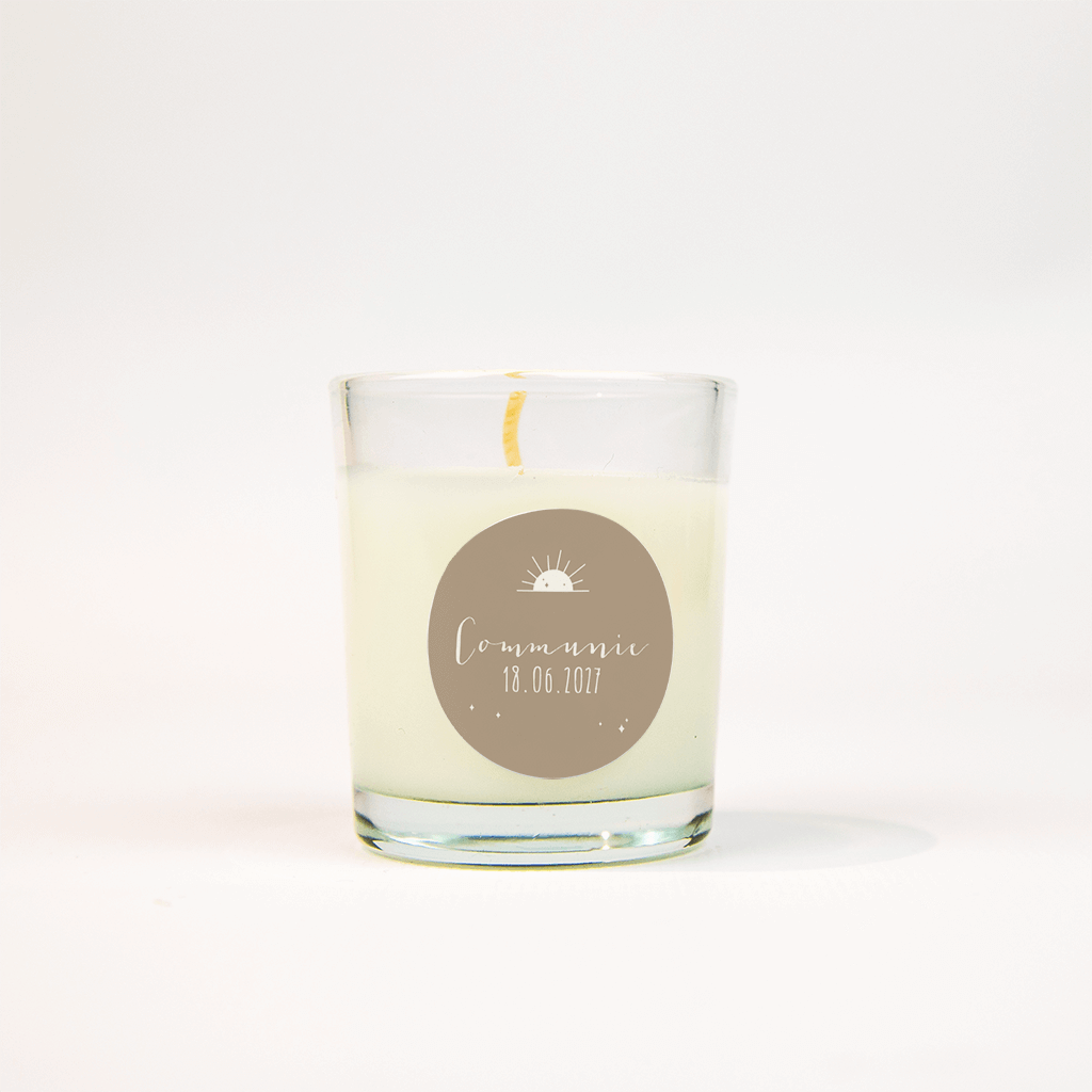 Communie sticker met zon op kraft-look - per vel van 25 stuks