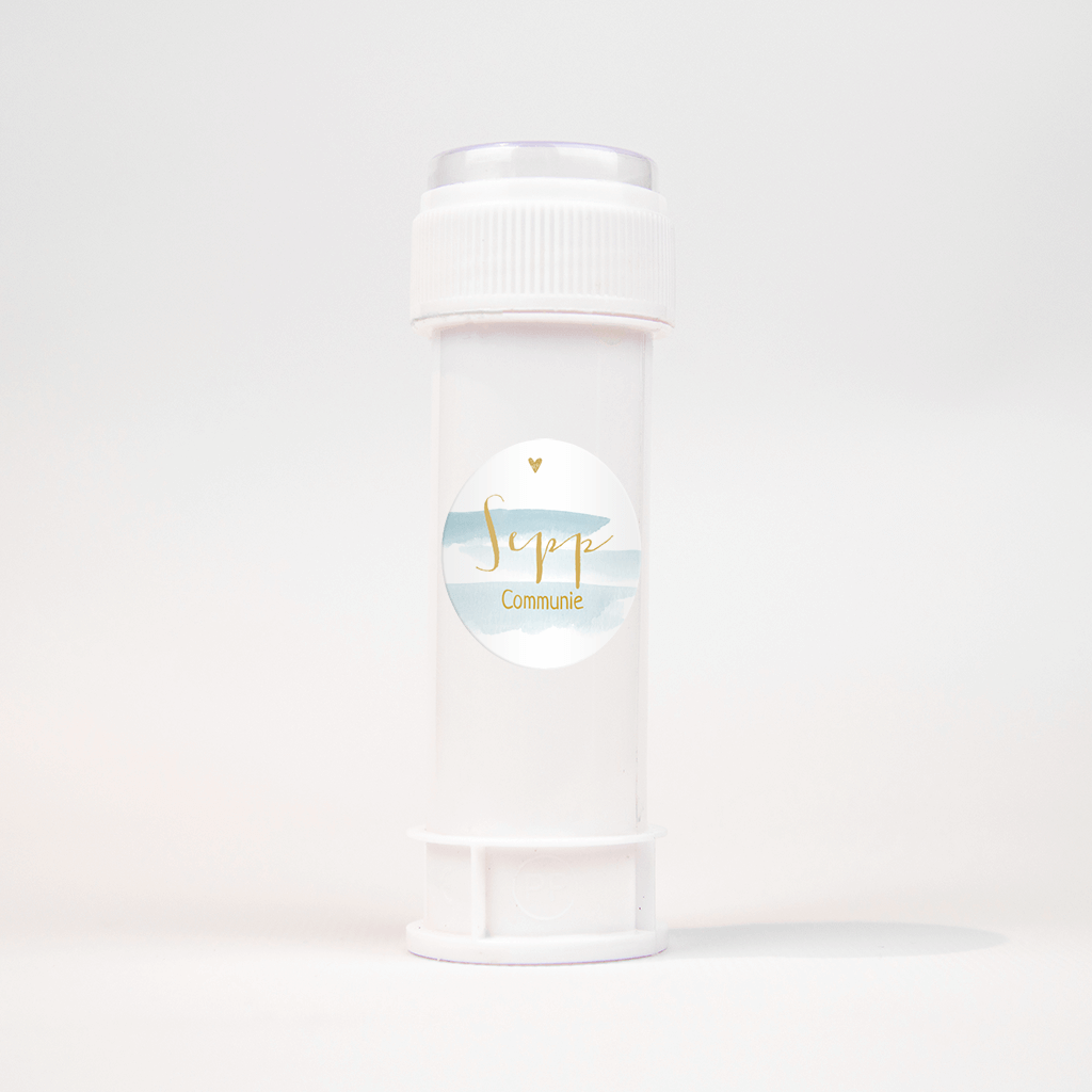 Sticker communie met blauwe watercolor en hartje - vel van 25 stickers