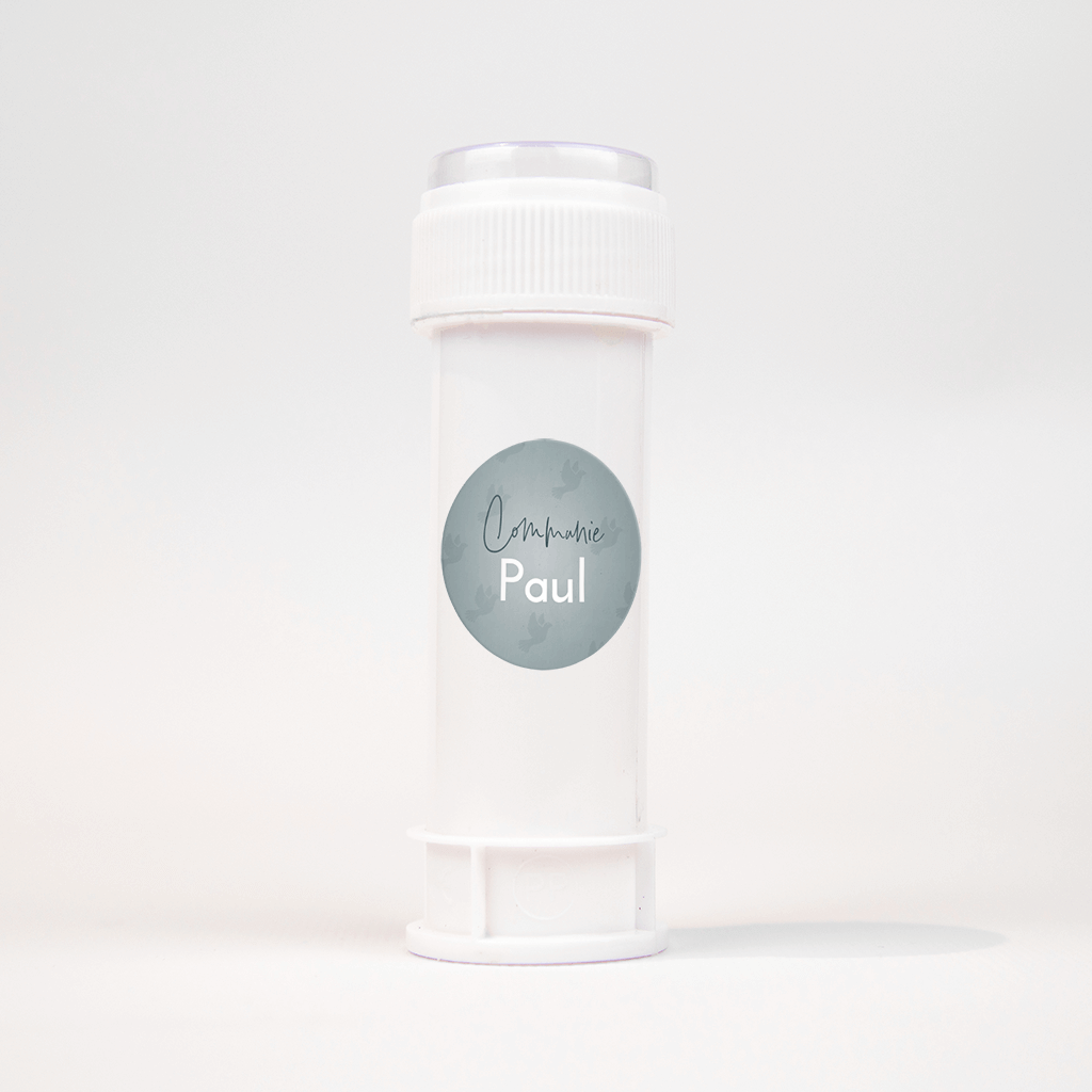 Maak de uitnodiging voor de communie van jullie zoontje helemaal compleet met deze trendy sticker. Op deze grijsblauwe sticker staat een patroon van duiven en de naam staat centraal, erboven in hippe letters 'communie'. Plak de enveloppen eenvoudig dicht met deze persoonlijke sticker, echt een eyecatcher!