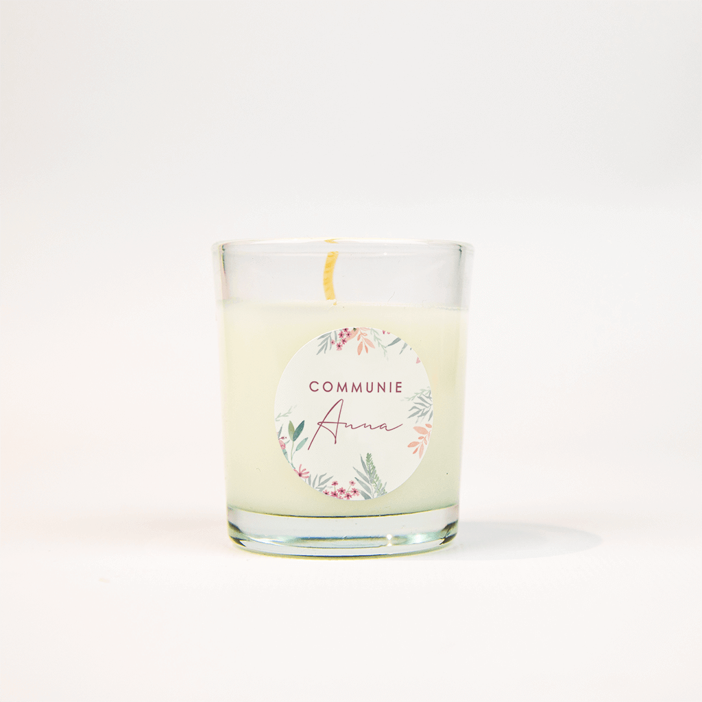 Sticker communie met watercolor bloemen - per vel van 25 stickers