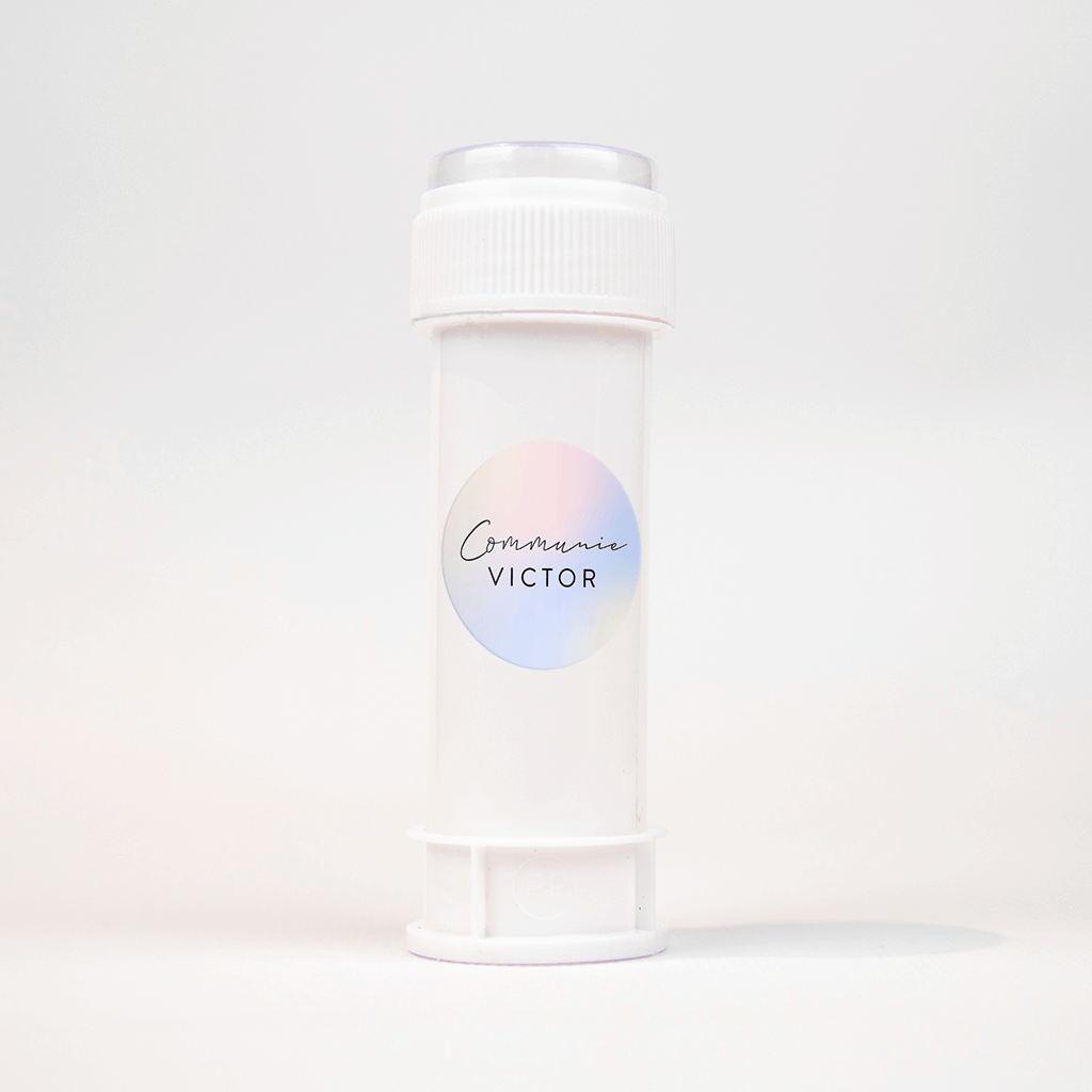 Een hele hippe sticker in holografische look voor bij de communie van jullie zoon of dochter, helemaal trendy! De naam staat in moderne letters centraal op de sticker, pas deze eenvoudig zelf aan in de online editor.