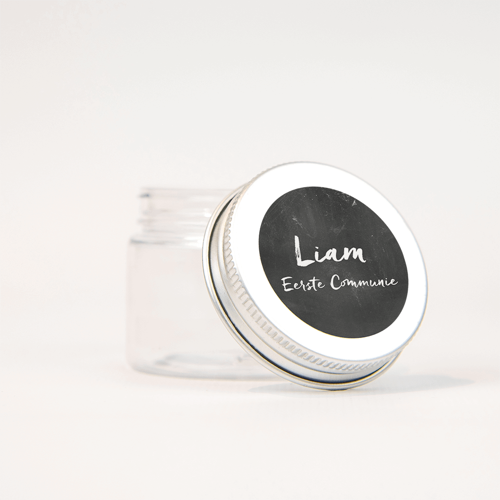 Deze coole sticker past heel goed bij de stoere communie-uitnodiging van jullie zoon. Op de zwarte krijtbord achtergrond komt de naam en 'eerste communie' mooi uit de verf, een echte eyecatcher!