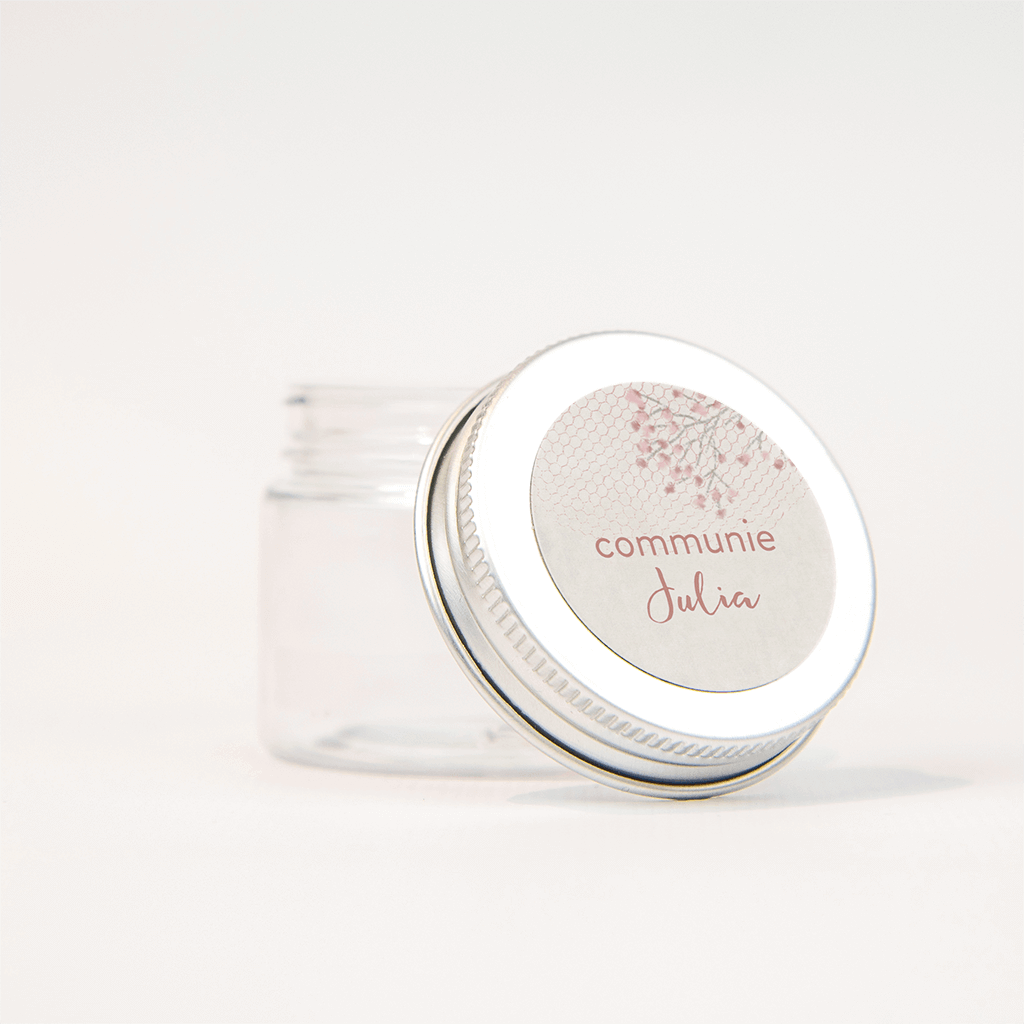 Sticker communie met roze takjes - vel van 25 stickers