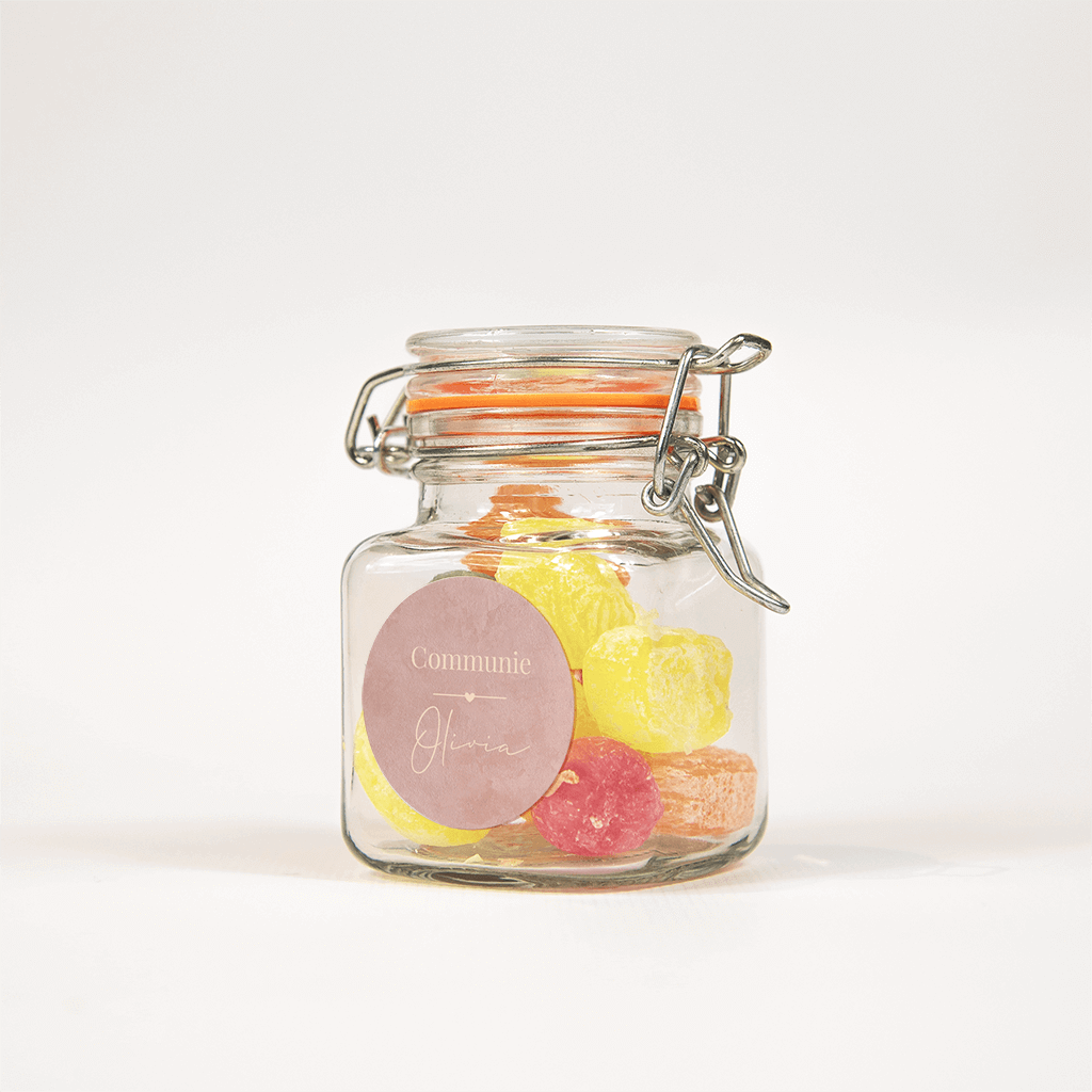Sticker communie met roze tekst op velvet-look-per vel van 25 stickers
