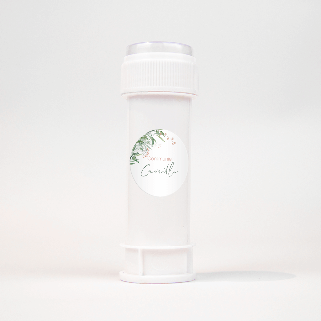 Stijlvolle sticker bij de uitnodiging communie met mooi getekende takjes en roze bloemetjes. De tekst is in roze en grijs en past mooi bij het ontwerp, mooie sticker voor een meisje!