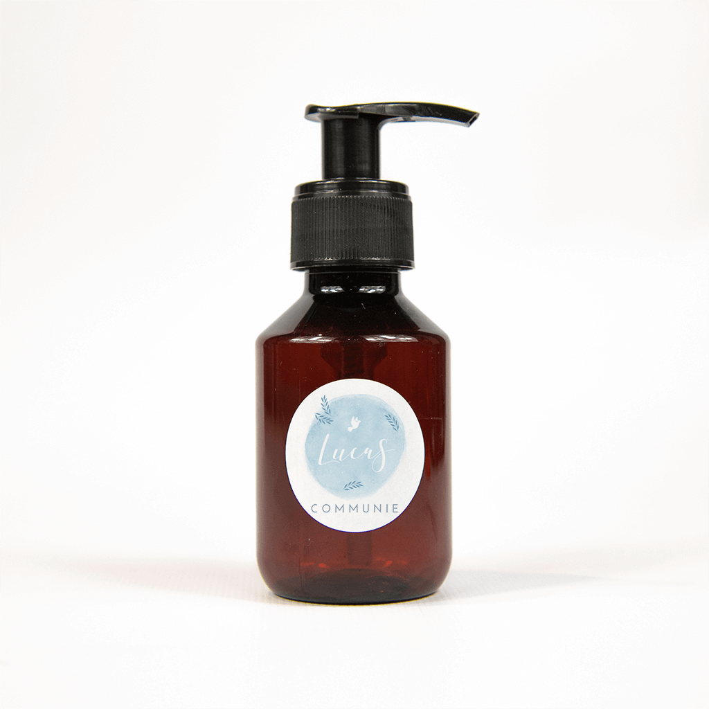 Deze sticker past perfect bij de trendy communie-uitnodiging van jullie zoon! In de blauwe waterverf cirkel staat de naam centraal in een sierlijk lettertype. Het witte duifje en de donkerblauwe olijftakjes maken het helemaal af.