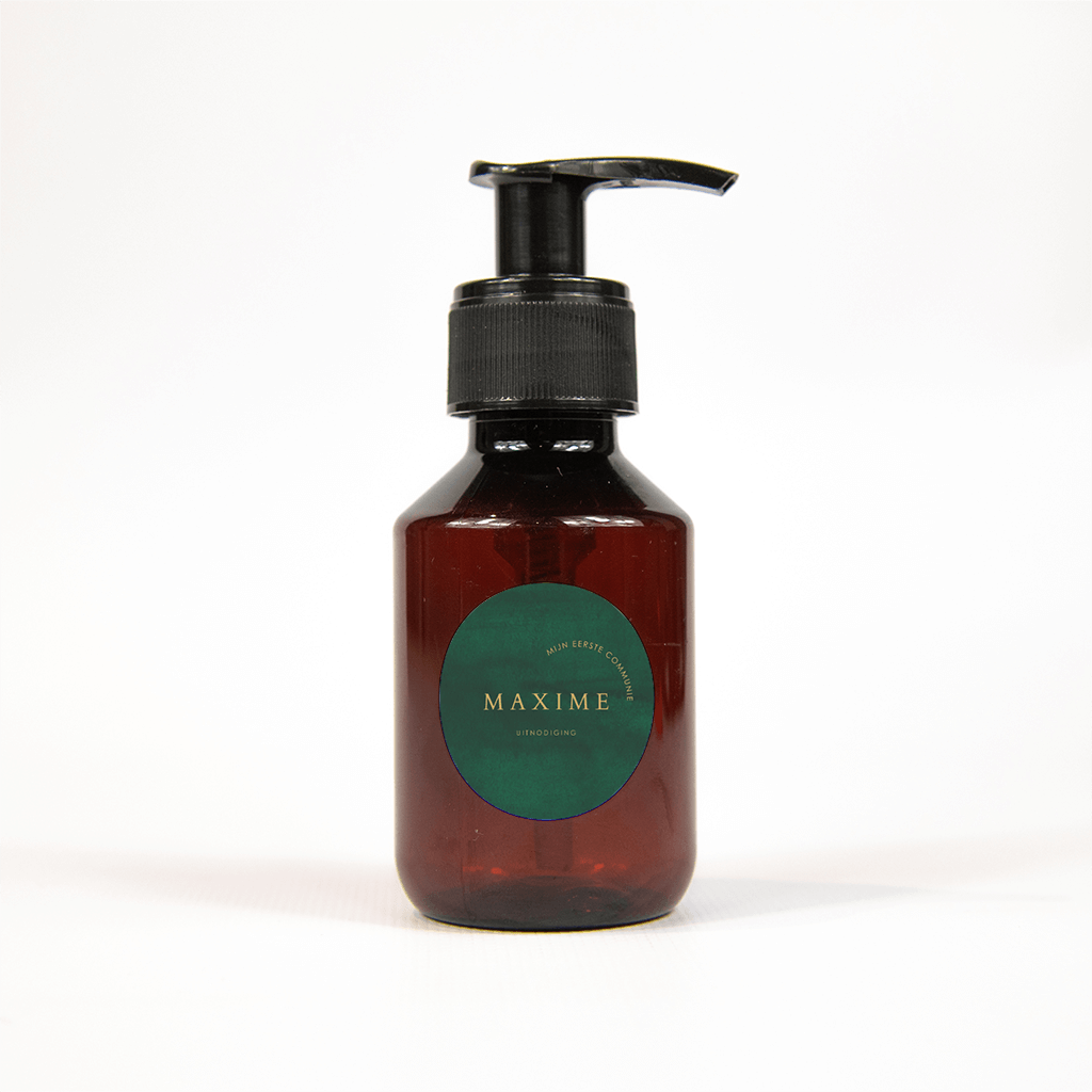 Stickervel met velvet-look groene achtergrond en de tekst in goud. De sticker heeft een leuk boogje met tekst