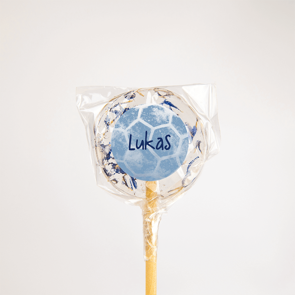 Een stoere ronde sticker voor een jongen of meisje die van voetballen houdt. Pas zelf de naam aan.
