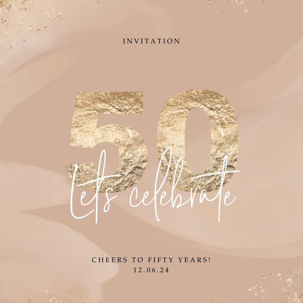 Chique uitnodiging voor 50e verjaardag met gouden cijfers