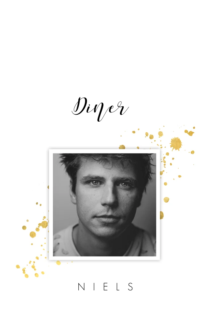 Goudfolie uitnodiging voor 21 diner met foto en spetters