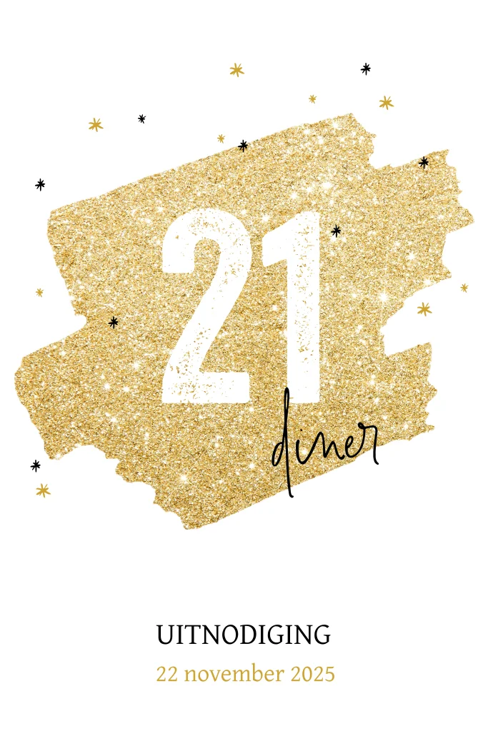 Trendy uitnodiging 21 diner met goud look en sterretjes