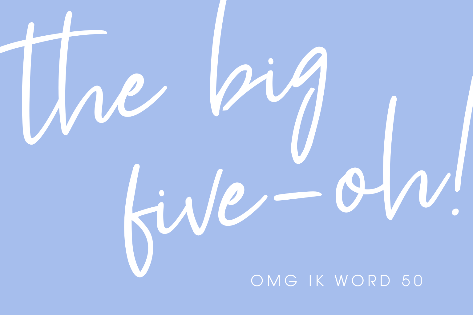 Trendy uitnodiging 50ste verjaardag in blauwe kleur met witte letters