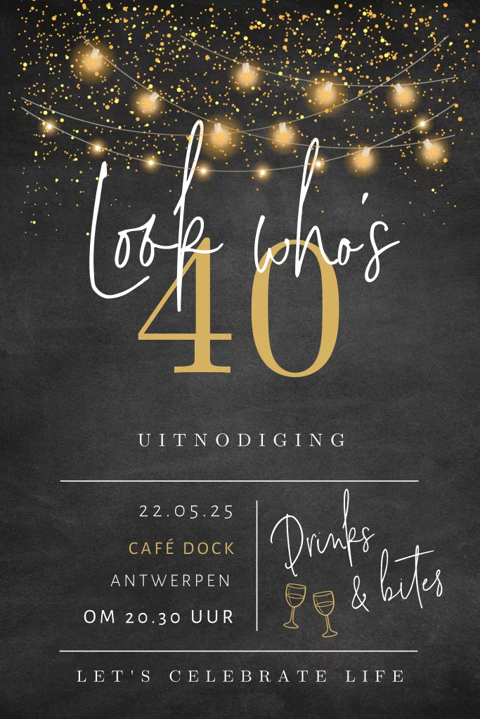 Uitnodiging voor 40e verjaardag met lichtjes en schoolbord-look