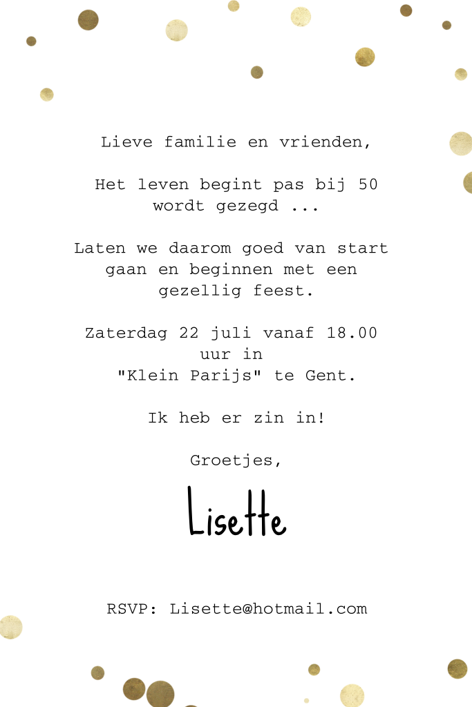 Uitnodiging Let's Celebrate 50 met gouden ballonnen