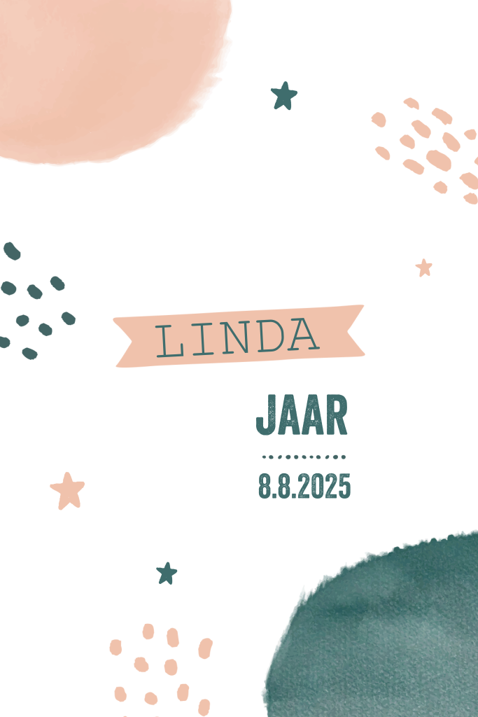 Moderne uitnodiging met sterren en waterverf elementen. Door de goudfolie en de organische vormen is deze kaart helemaal van deze tijd!.