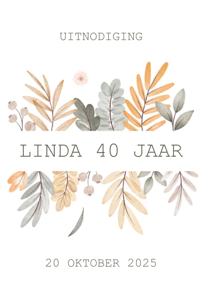 Uitnodiging verjaardag met getekende bloemen en takjes