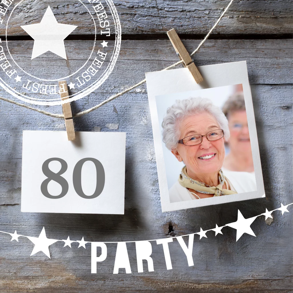 Verjaardagsuitnodiging met waslijntje en polaroid foto