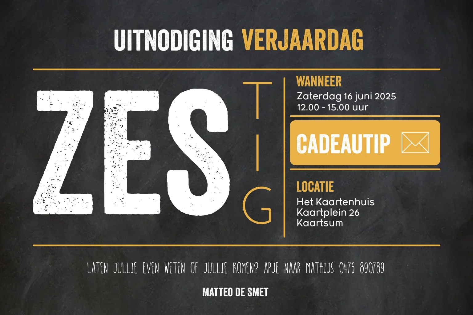 Uitnodiging zestigste verjaardag krijtbord look en typografie