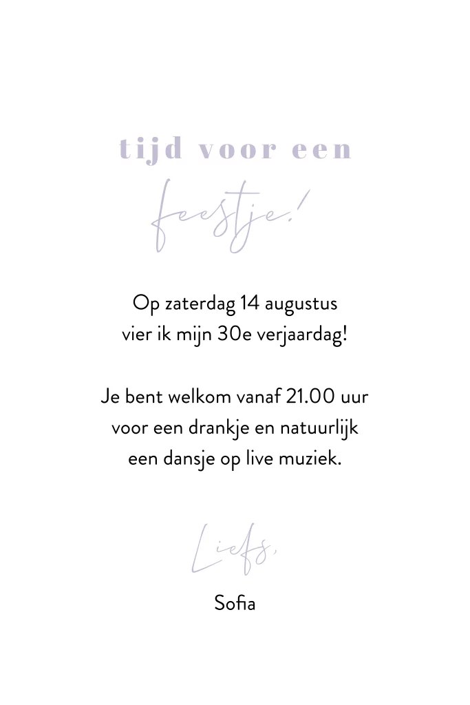 Vrolijke verjaardagskaart met lila achtergrond en de letters van je leeftijd in holografisch folie gedrukt. De leeftijd kun je gemakkelijk zelf aanpassen in de editor. Holografisch folie is folie met een regenboog effect, extra bijzonder en feestelijk.